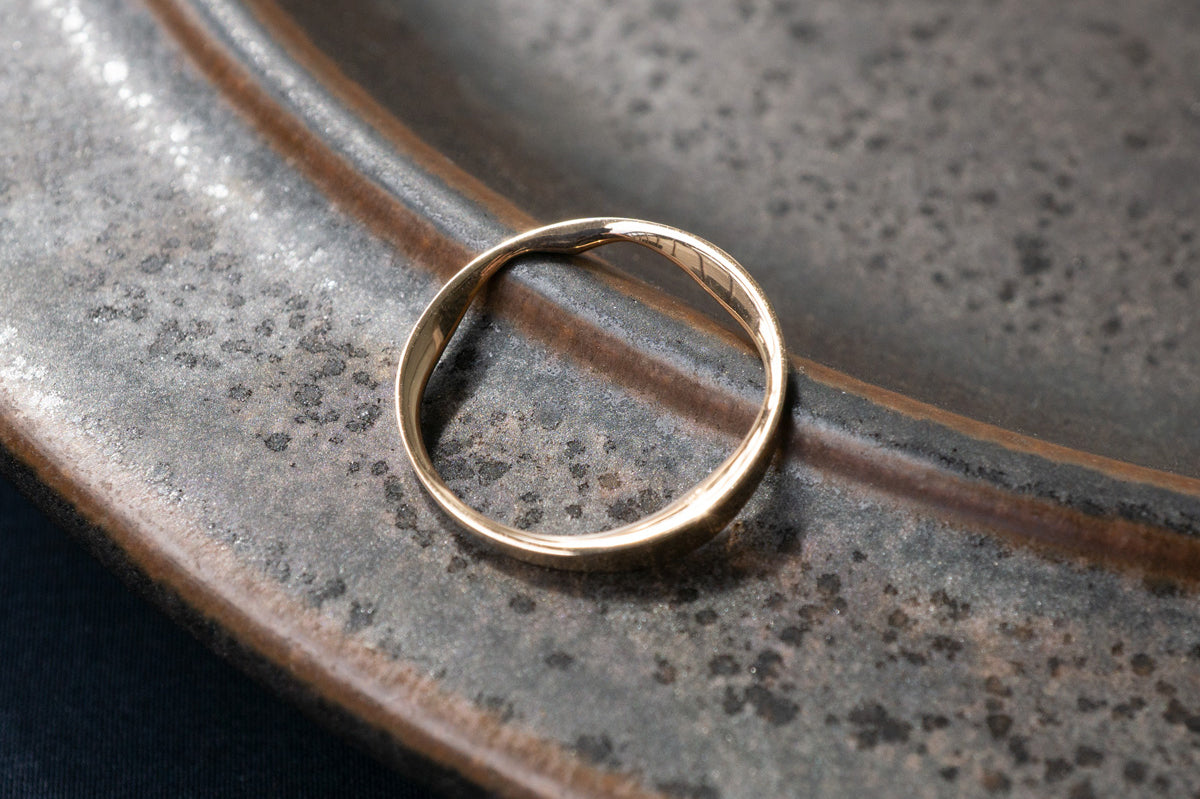 指輪を着用した際に見える側面、取った際に見える断面の2方向から“AMO”という単語が見られるのが特徴的です。